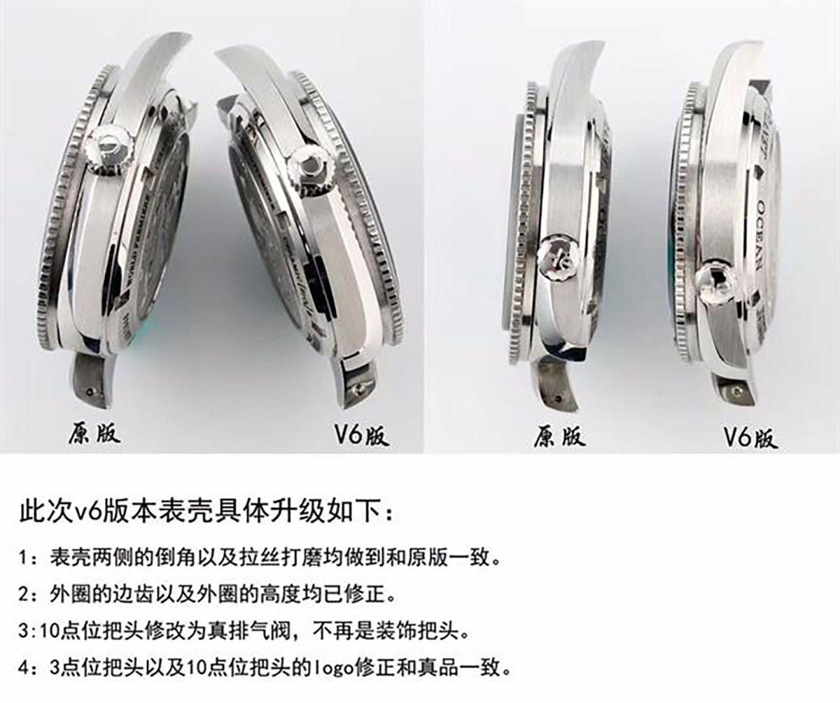 排气把头:爱好潜水表的朋友都熟知,潜水表都有这个装置,在正版里面的用处比较大,如潜水员在一千米的水压下,假定表没有这个设备表就有可能被被水压压碎,所以正版这个装置会在必定气压下排除气体,来减压来保持表的正常运行,但是复刻版这个装置就没有这个功能了,只是为了还原正品腕表的外观。当然这里要说一个题外话:注意一下许多表友说表把头这个蓝色的维护膜撕不掉,小编教您的方法是用湿巾擦,直接擦到没有蓝色停止(许多新表都有这个出厂维护蓝膜)。