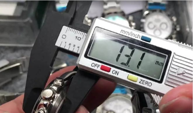 最初的时候市场上劳力士迪通拿系列腕表的复刻中强版本是由JF厂制作出来的,腕表搭载的是上海7750机芯,可以说在腕表的功能上完全与正品同步,但是使用这款机芯有一个不好的地方就是厚度,JF厂的复刻腕表厚度相比原装正品的厚度厚了1.5MM,达到了14.4MM。