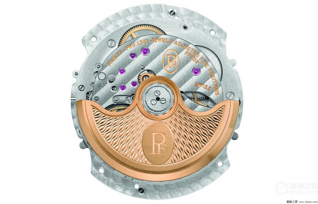 腕表内部搭载了PF317机芯,并在核心处的月份凸轮配备了行星齿轮,因而能够实现对二月份不同天数的精准掌控。这项装置的指示器能够被准时从中央轮释放出来,从而使得日期瞬间跳到下一个月的第一天。