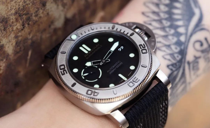 精巧的细节规划还有设于9点钟方位的小秒盘和3点钟方位的日期显现,以及 「Panerai Submersible」和「Automatic 300m/1000ft」字样。两个字样并非印刷于表盘表面,而是使用丝网 印刷技术,镌刻于保护表盘的蓝宝石水晶玻璃之上,更具立体感。之前的没有这种悬浮规划,VS可以说是开创了先河。