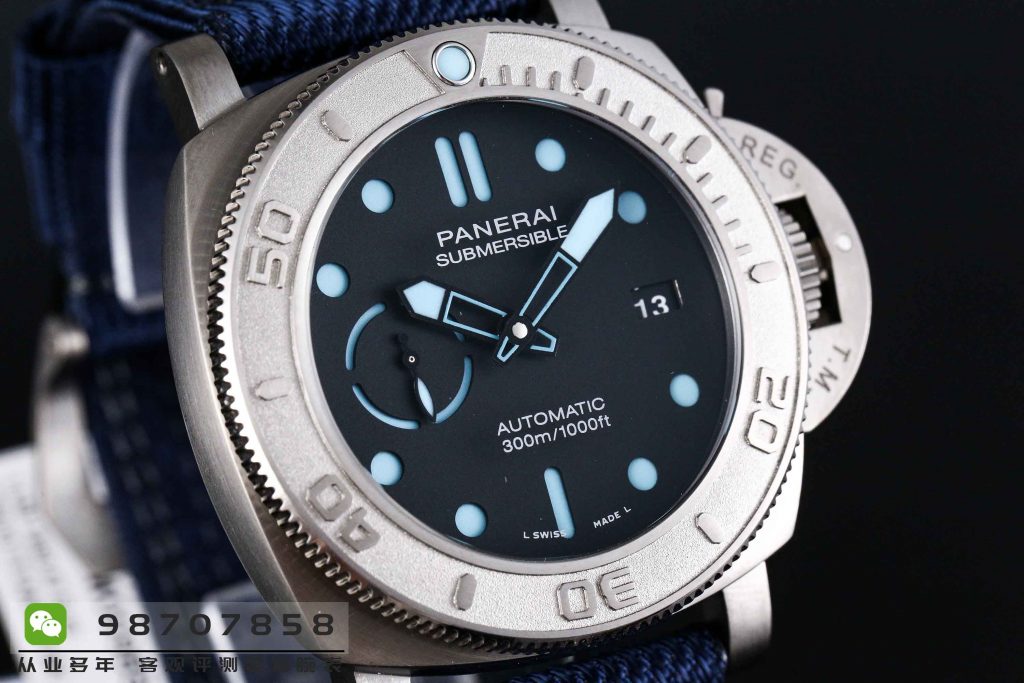 VS厂沛纳海PAM985腕表,内悬浮logo,立体数字圈口,三明治表盘,脂纤维布带,新老标志性元素完美结合,突破自我。厚度改薄,树脂纤维表带,佩戴舒适贴手不显笨重。vs厂pam985也是采用钛钢制作表壳,内悬浮logo,三明治表盘。盘面做的非常漂亮