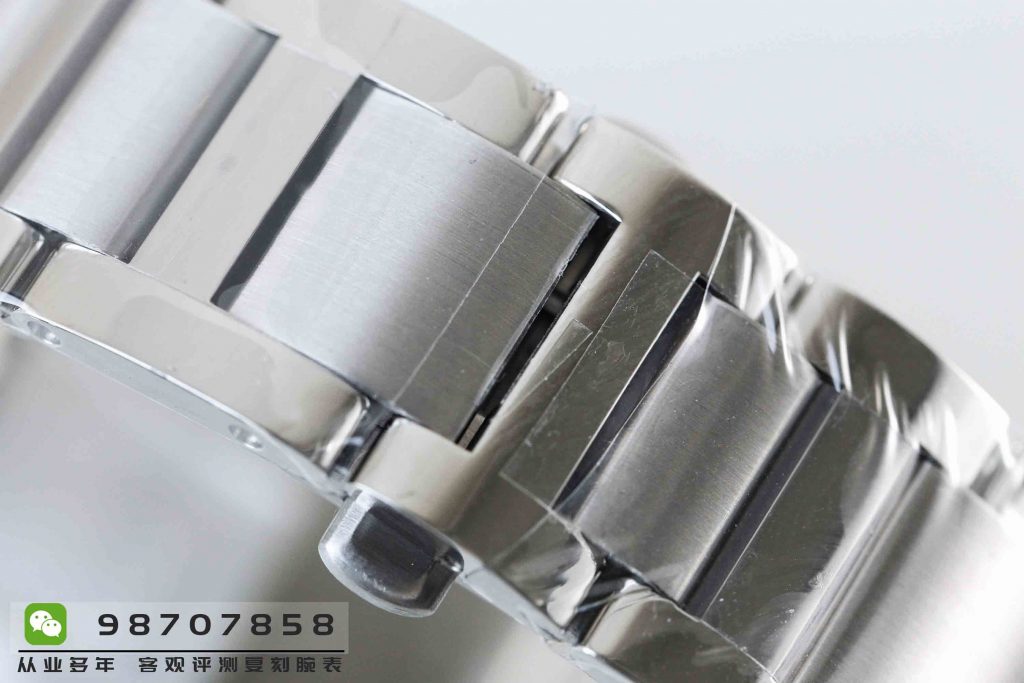 表扣方面,我们可以看到是拉丝喷砂工艺的,视觉和手感方面都是非常的舒适,同时表扣上的Cartier等相关字体都是非常的深邃有立体质感。