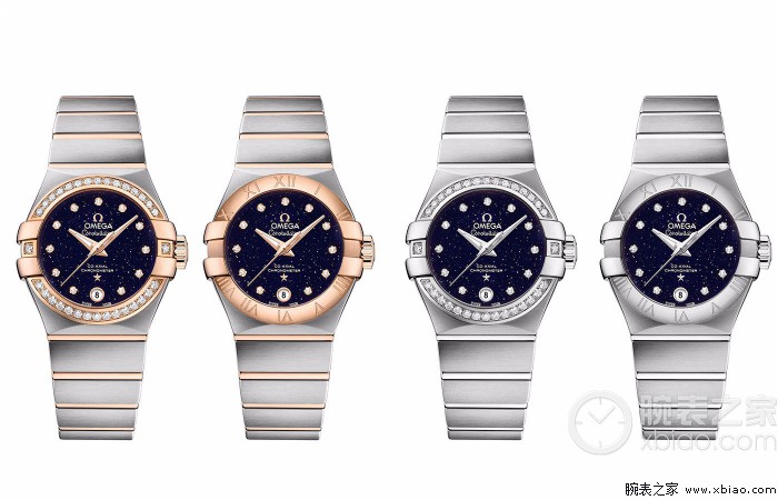 全新星座系列“蓝色星空”限量版女士腕表有四种款式可供选择,其中两款由红色18K金与精钢混合打造而成,另外两款则采用精钢材质,并分别搭配镶钻表圈或罗马数字表圈。深蓝色砂金石玻璃表盘如璀璨星空般闪耀迷人,演绎了星座系列腕表的灵动之美。钻石小时刻度嵌于红色或白色18K金托槽中,欧米茄品牌标识与星座星形徽章亦采由同材质打造,于表盘上熠熠生辉。红色或白色18K金指针经抛光打磨,更显立体优雅。腕表配备磨砂精钢表链或饰有红色18K金抛光装饰条的磨砂精钢表链。